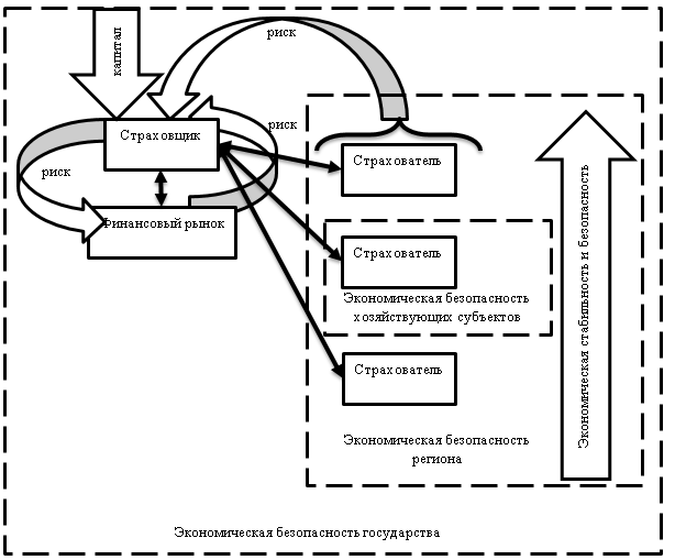 Взаимосвязь страхования хозяйствующего субъекта и экономической безопасности можно отразить на схеме, составленной автором (рис. 1).