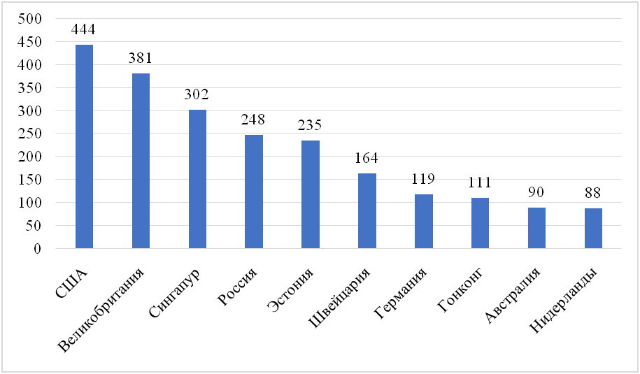 Рейтинги стран по количеству проектов приведены на рисунке 4.