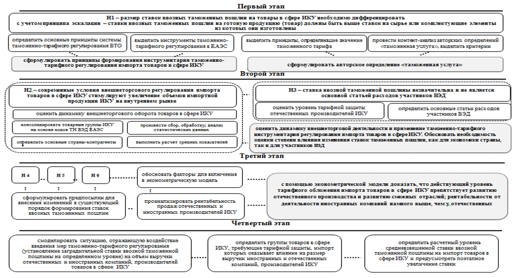 Рисунок 1 – Реализация этапов методики определения дифференцированных ставок ввозных таможенных пошлин при импорте товаров в сфере информационно-коммуникационных услуг