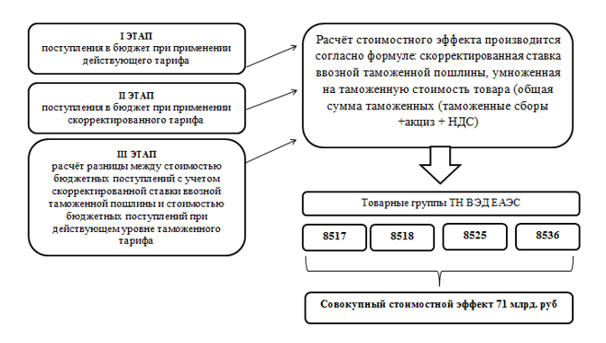 Рисунок – 3 Порядок расчета бюджетных поступлений при регулировании ставок таможенных пошлин на товары информационно-коммуникационной инфраструктуры
