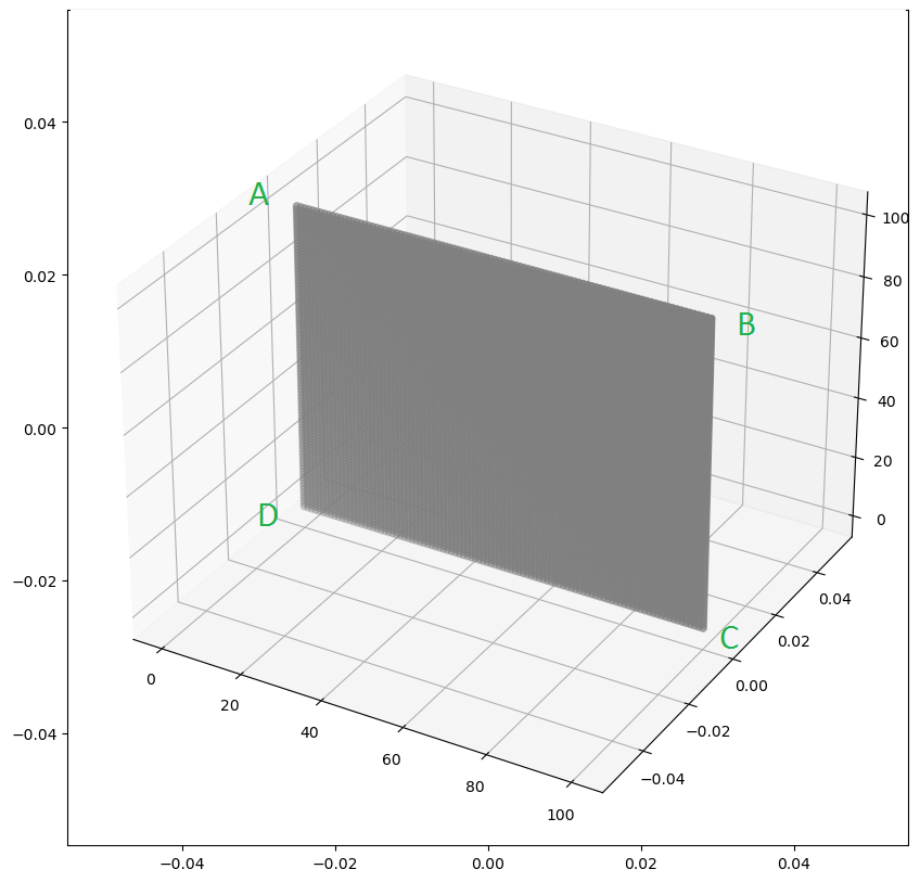 Часть поверхности объекта, рассматриваемого в данном исследовании, обозначена как ABCD. Рассматриваемый элемент после конвертации в формат облака точек представлен на Рис. 5.