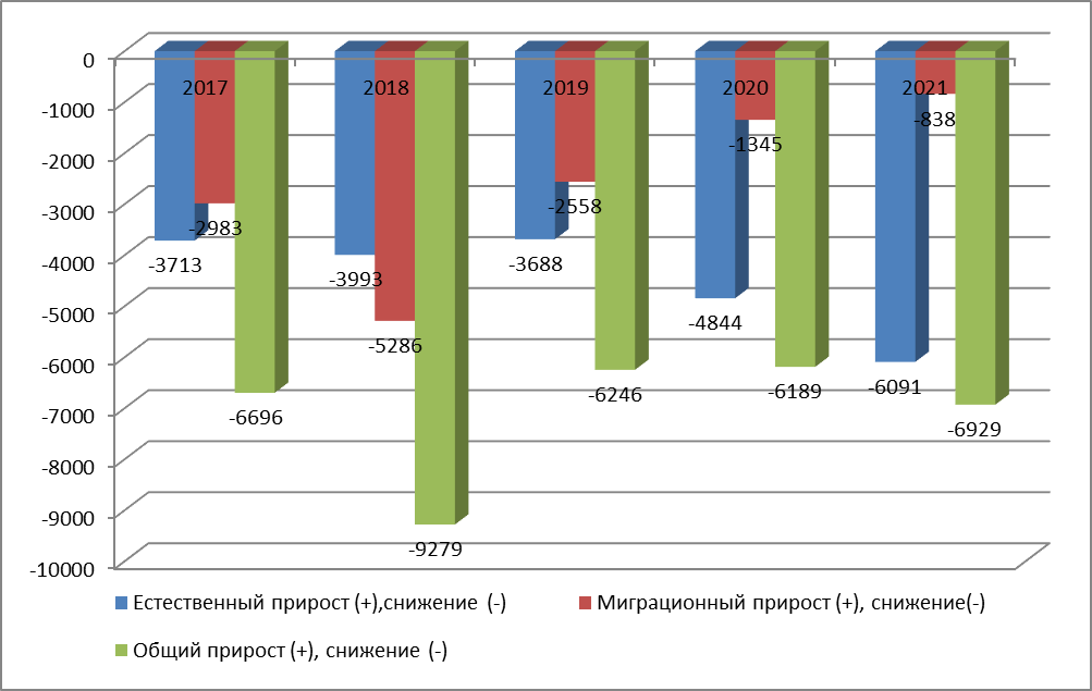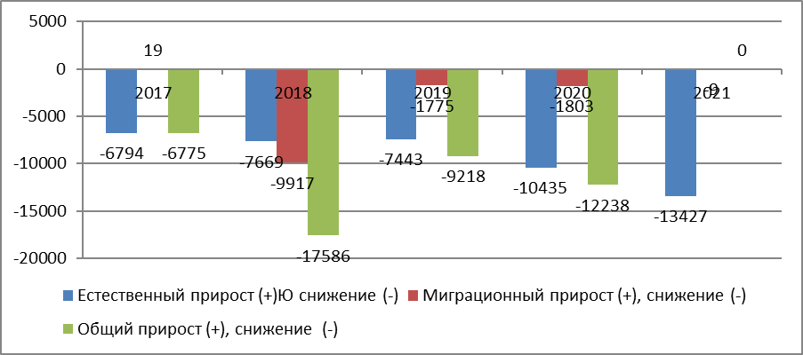 Основной причиной снижения общей численности населения является естественная убыль, а также рост миграционного оттока (Рис. 2).