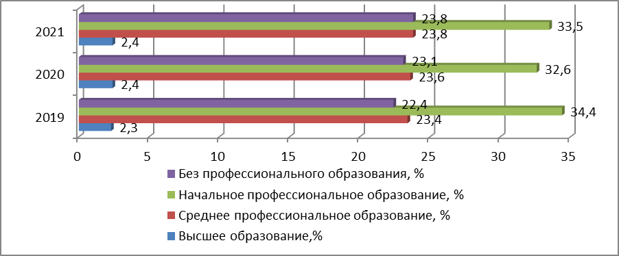 Лишь 22,3% рабочих имеют классность, что на 1,8 п.п. ниже, чем в 2019 г. . В последние годы в связи отсутствием нормативно-правовых требований данный показатель практически утратил свой смысл и применяется только в качестве дополнительного стимула в системе мотивации трудовой деятельности [12].