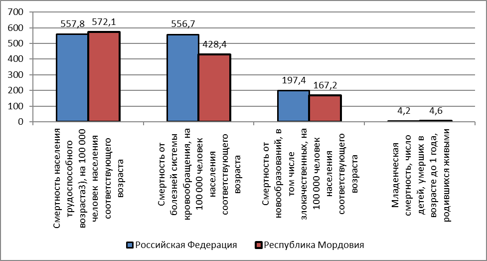 По показателям национального проекта «Здравоохранение» отметим, что в Республике Мордовия выше среднероссийских показателей смертность трудоспособного населения и младенческая смертность.