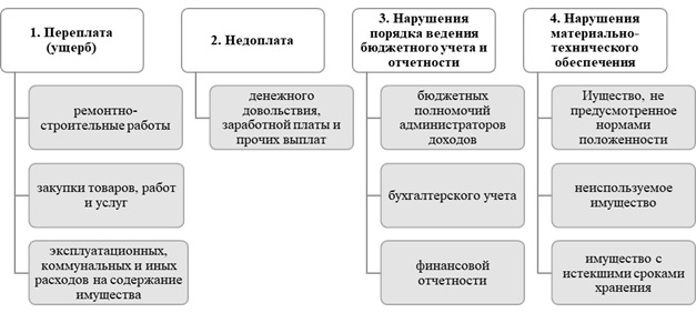 Далее более подробно проанализированы все перечисленные на рисунке 1 нарушения ФХД ведомственных образовательных организаций.