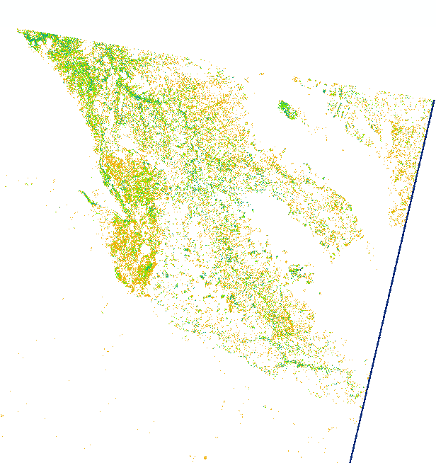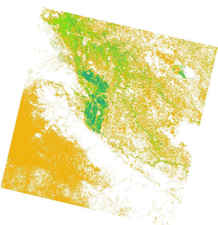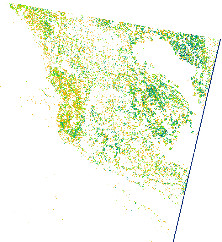 - Значения NDVI менее 0,1 соответствуют участкам песка, камней или снега.