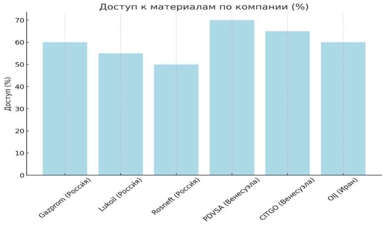 Финансовые трудности: Финансовая нестабильность, вызванная санкциями, привела к нехватке инвестиций в инновации для многих компаний. Однако некоторые организации, такие как CITGO и PDVSA, имели возможность удерживать инновации на уровне 30% и 25% соответственно. Это продемонстрировало значительную гибкость.