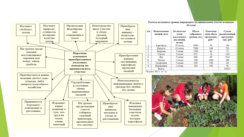 Профориентационная работа должна вестись круглогодично. Потребуется восстановить пришкольные садовые и огородные участки (рисунок 7). В ряде школ создать небольшой парк сельскохозяйственных машин, организовать выставочные центры, вовлекать сельскую молодежь, где это возможно, и в производственные процессы. Проводить ежегодные конкурсы по типу: «Аграрии – истинные кормильцы страны!», «Аграрный сектор – локомотив российской экономики!» и другие профориентационные мероприятия.