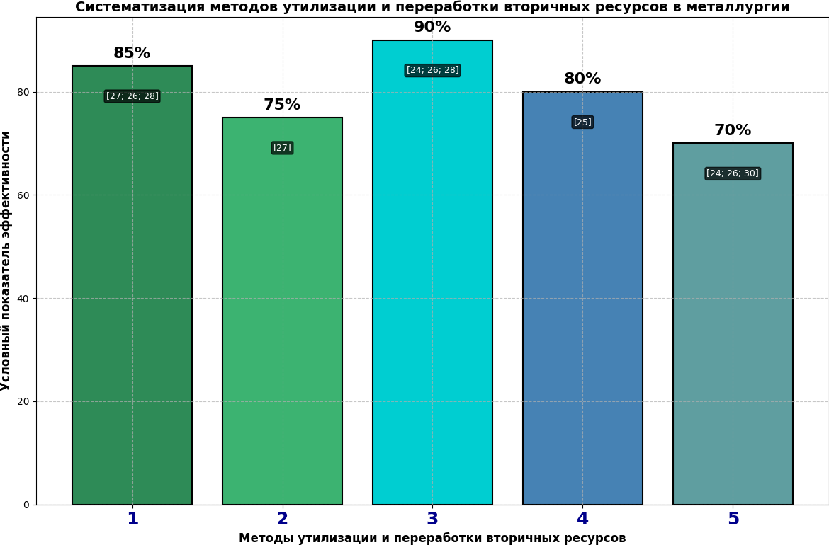Проведенный анализ свидетельствует о том, что современное развитие металлургии неразрывно связано с внедрением ресурсосберегающих и экологически ориентированных технологий. Наиболее перспективными являются методы, позволяющие не только снизить текущее негативное воздействие, но и ликвидировать накопленный экологический ущерб за счет вовлечения техногенных отходов в хозяйственный оборот. Комплексный подход, сочетающий гидро- и пирометаллургические процессы с механохимической активацией и созданием замкнутых производственных циклов, формирует основу для перехода к циркулярной экономике в металлургическом комплексе. Дальнейшая работа должна быть направлена на оптимизацию этих технологий, обеспечение их экономической целесообразности и создание необходимой нормативно-правовой базы для стимулирования их широкого промышленного внедрения.