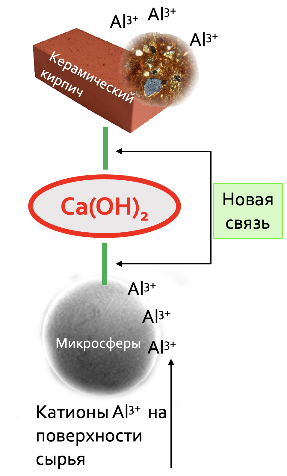 На Рис. 2 представлена качественная схема, которая иллюстрирует связывание портландита с керамическими компонентами за счет образования между ними новой связи.