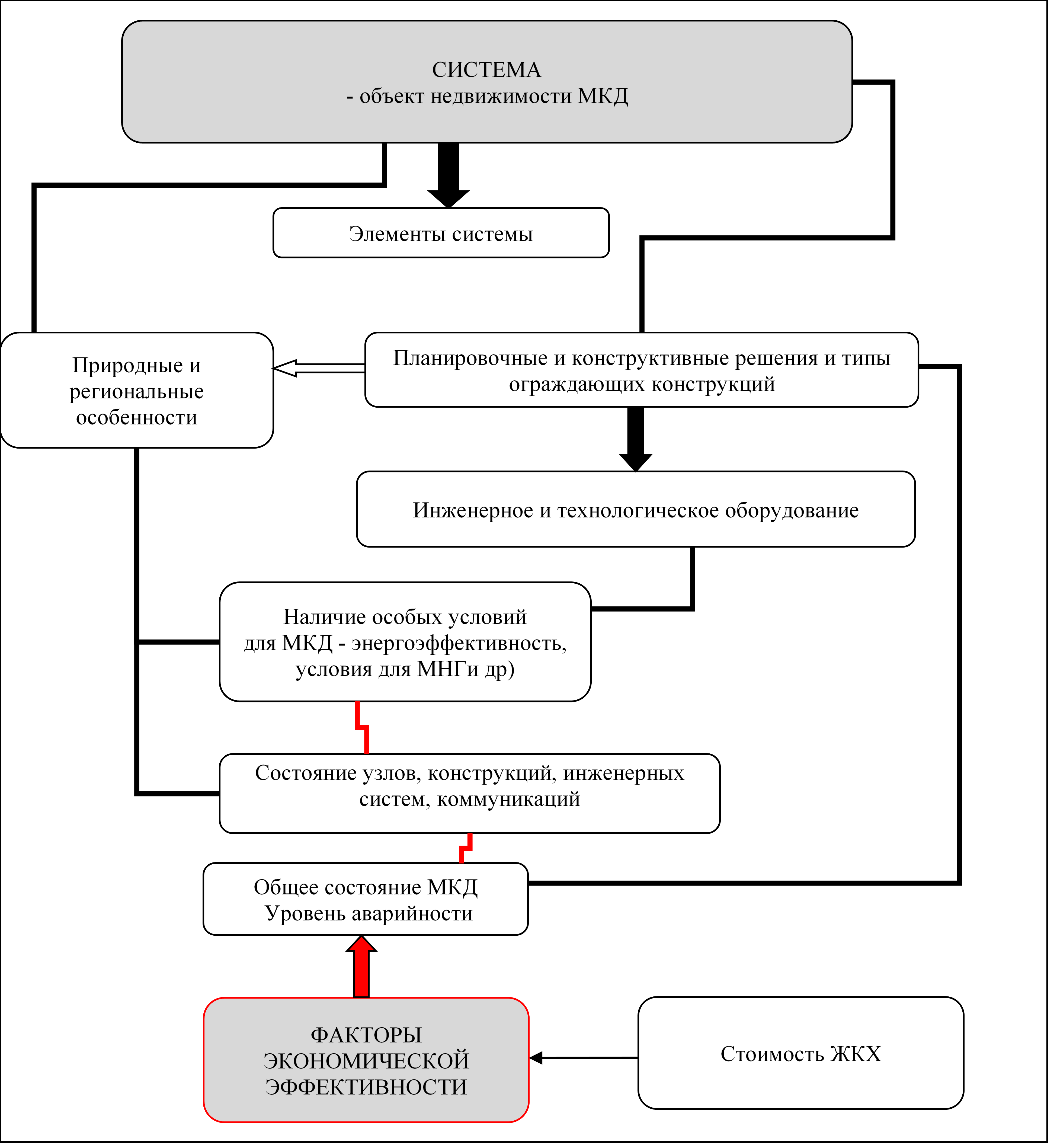 Система имеет параметры, описывающие ее состояние, и, как и всякой системе ей присущи прямые и обратные связи между элементами, «входами» и «выходами», например, планировочные решения здания зависят от функционального назначения здания, ограждающих конструкций, систем утепления, и т.д., которые в свою очередь зависят от климатических условий района строительства. Существенным в построении ТИM-модели является виртуального возможность прогнозирования на всех этапах жизненного цикла объекта от проекта до эксплуатации, реконструкции, модернизации или утилизации. В качестве целевой функции могут быть приняты разные параметры, например, при экспертизе проекта строительства такие как: экономические (минимизация затрат, или повышение рентабельности вследствие повышения процента полезных площадей или существенного изменения функциональной программы объекта недвижимости), геотехнические (минимизация влияния строительства на окружающую застройку), социальные или комплексные согласно стохастическим вероятностям. Структурная схема позволяет выделить в общем спектре экспертиз комплексные управляющие воздействия, формируемые как система методов.