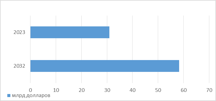 Мировой рынок медицинского туризма, который в 2023 году оценивался в 31 176,14 млн долларов, по прогнозам, достигнет 58 216,94 млн долларов к 2032 году (рисунок 2), соответственно ежегодный рост составит в среднем 11,04%, что обусловлено высокими расходами на лечение в развитых странах. В 2024 году южнокорейская больница Северанс внедрила генетическое профилирование с использованием искусственного интеллекта для лечения рака, что привлекло на 20% больше иностранных пациентов [12].
