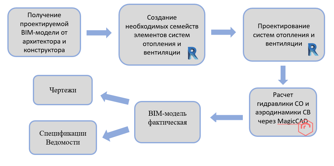 - Проектирование инженерных систем (ОВ, СО) с расчётами в Revit и MagicCAD;