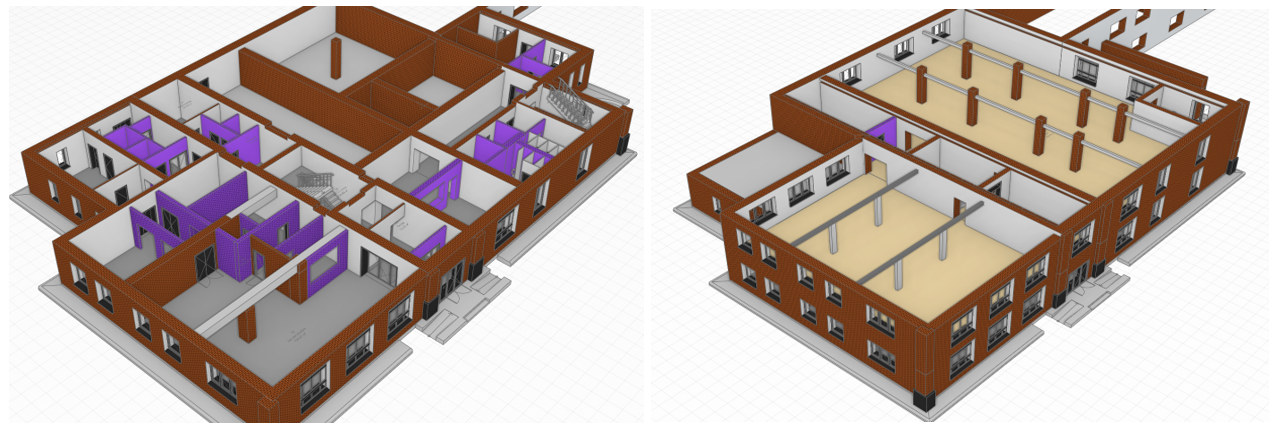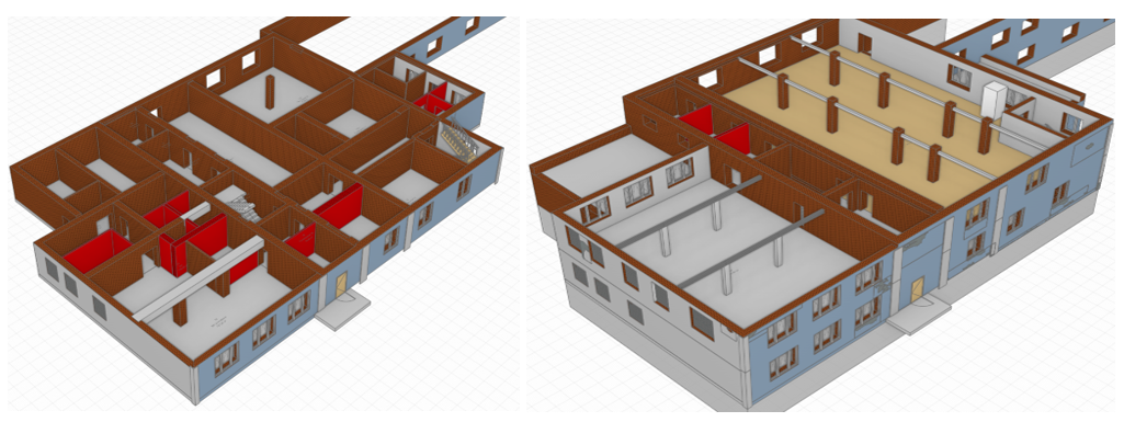 По созданной 3D-модели был разработан план демонтажа перегородок (рис. 4).