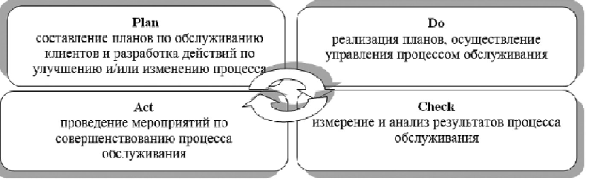 Рис. 3. Управление процессом обслуживания в соответствии со стадиями цикла PDCA