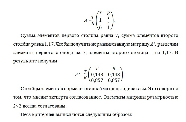 Выводы. Метод анализа иерархий (МАИ) удовлетворяет требованиям, предъявляемым к научному обоснованию методов принятия решений [6]: