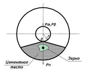 Рис. 3 - Схема к расчету усилия, действующего на частицу бетонной смеси