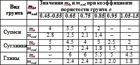 Значения n принимаются от 0.15 до 0.3 для глинистых и от 0.25 до 0.5 для песчаных грунтов; теории упругости соответствует n = 0.