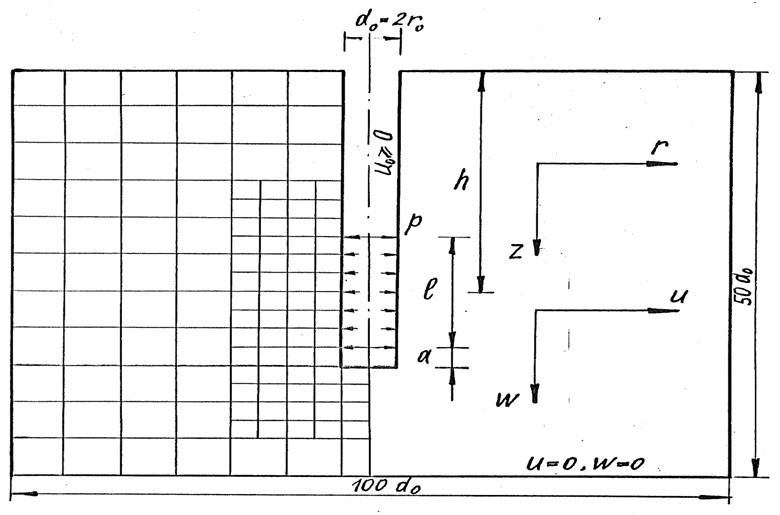 Рис.5. Расчетная схема двумерной осесимметричной задачи из [4]