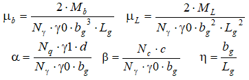 Строительные правила предусматривают расчет несущей способности грунтового основания по формуле (5.32) [1], где не учитываются прочностные характеристики железобетонного фундамента. Основой для формулы (5.32) послужила формула Терцаги, которая до сих пор применяется в Западной Европе в доработанном виде и продолжает оставаться объектом усовершенствований [2].