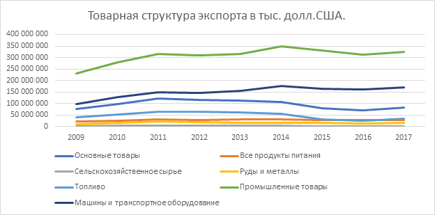 Рисунок 6. – Товарная структура экспорта Великобритании в 2009-2017 гг., млрд. долл. США