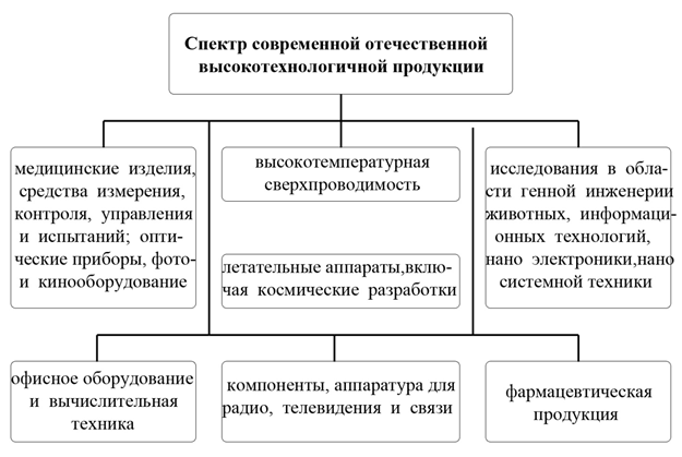 Рисунок 1 – Спектр современной отечественной высокотехнологичной продукции