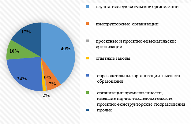 - прослеживается процентное увеличение сегментов высшего образования (с 13% до 24%), промышленных компаний с научно-исследовательскими подразделениями (с 7% до 10%), опытных заводов (с 1% до 2%) и прочих субъектов предпринимательства (с 14% до 17%);