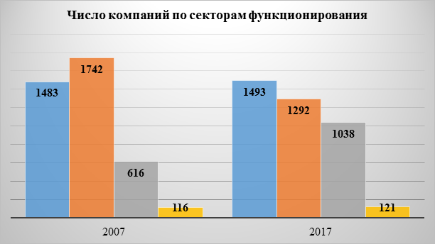 Рисунок 5 – Число высокотехнологичных компаний по секторам функционирования в 2007 и 2017 годах