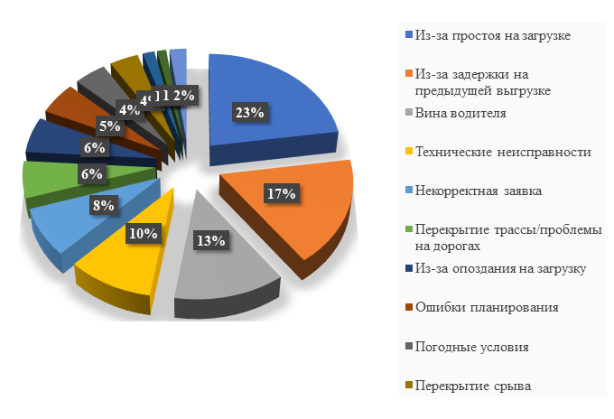 Анализ причин опозданий на основе сбора и систематизации комментариев водителей и сотрудников диспетчерской службы, а также смежных подразделений представлен на рисунке 4.