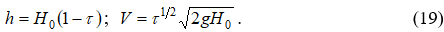 Формулы для определения глубин и скоростей при заданном параметре t имеют вид: