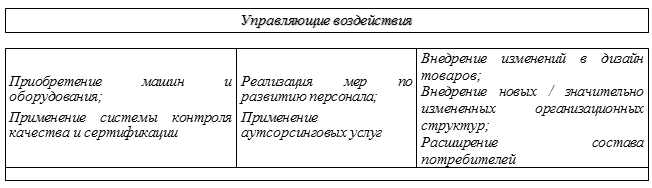 Раздел 2. Сокращение «Исследований и разработок» на 8,3% увеличивает позицию «Затраты на топливо-энергетические ресурсы» на 2,7%, уменьшает «Затраты на процессные инновации» на 2,6%; «Затраты на процессные инновации» возрастут на 0,1% в случае роста «Исследований и разработок» на 0,3%. Снижение фактора «Затраты на сырье» на 3,4% прогнозируется в случае уменьшения «Исследований и разработок» на 8,3%. Обратную ситуацию возможно ожидать при росте «Применения систем контроля качества, сертификации товаров, работ, услуг» на 10,8%, что повлияет на увеличении «Затрат на сырье» на 6,1%. Увеличение «Затрат на продуктовые инновации» на 0,7% расценивается в случае падения «Затрат на процессные инновации» на 2,6% при условии сокращения управляющего воздействия «Исследования и разработки» на 8,3%;