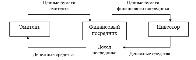 Деятельность финансовых посредников, принимающих участие в размещении эмитированных предприятиями ценных бумаг связана с их эмиссией собственных ценных бумаг (рис. 5). Финансовые посредники покупают первичные ценные бумаги предприятий и в свою очередь осуществляют эмиссию собственных. Целью финансовых посредников является обеспечение привлекательности собственных ценных бумаг для инвесторов за счет диверсификации рисков, наличия специфических профессиональных знаний и опыта, апробированных экспертных и аналитических процедур, экономии трансакционных издержек от масштаба финансовой деятельности, обеспечения более удобных сроков обращения собственных ценных бумаг в сравнении с первичными. Финансовыми посредниками выступают банковские учреждения, страховые компании и частные пенсионные фонды, институты совместного инвестирования и инвестиционные компании.