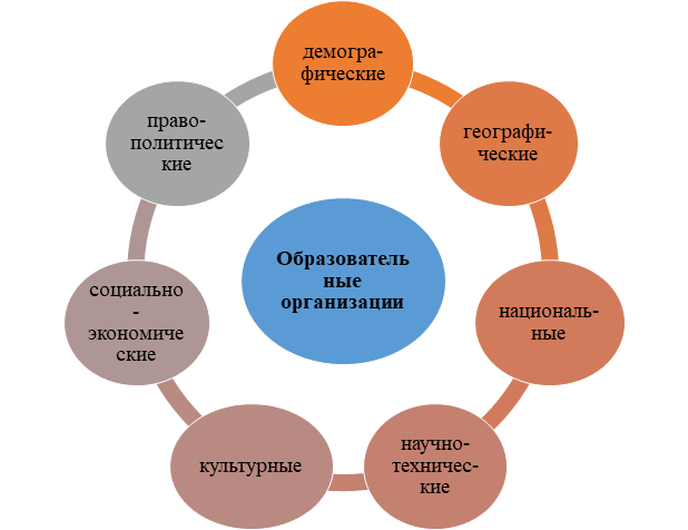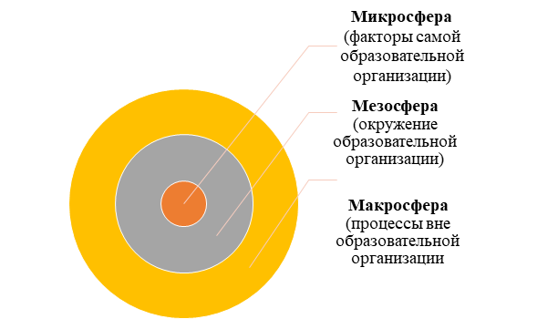 Настоящая сфера включает как потенциал, так и опасности для функционирования образовательной организации в связи с чем требуется производить бесперебойный мониторинг ее динамики и уметь к ней адаптироваться.