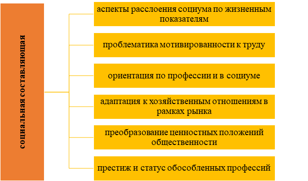 Что касается социальной составляющей, то наиболее весомые ее параметры выступают следующими (рисунок 6).