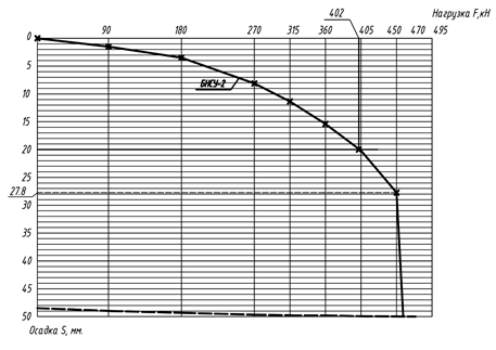 На основе графиков, представленных на рис. 2, можно сделать вывод о том, что фактическое значение осадки S=20,0 мм для сваи БНСу-1 соответствует несущей способности