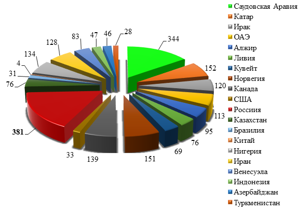 Таблица 1 – Запасы и экспорт углеводородов (нефти и газа в целом) по странам [1]