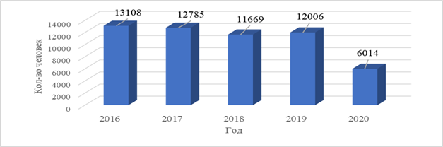 Среди данных таблиц была найдена закономерность: за период 2016-2020 гг. число анкетируемых получателей услуги снижалось. Поэтому, для того чтобы подтвердить или опровергнуть данную закономерность, был проведен мониторинг таможенной статистики ФТС России, а именно сведения о количестве получателей таможенной услуги по информированию и консультированию.