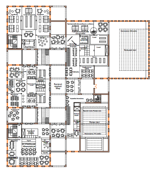 Рис. 6 ланировочная схема 2-го этажа средней школы и общественного цента в городе Туусуле (Финляндия)