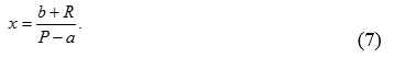 x=b:(Р-a) (2)
