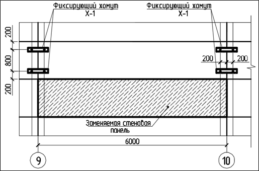 Стандартное решение по замене стеновых панелей предполагает замену стеновых панелей полностью по всему ряду. Для реализации такого решения пришлось бы демонтировать 124 стеновых панели, заменить поврежденные и восстановить обратно 91 стеновую панель. При этом в процессе демонтажа стеновых панелей возможно появление новых повреждений, вплоть до разрушения. Заказчик не одобрил такого решения, так как оно было слишком дорогостоящим.