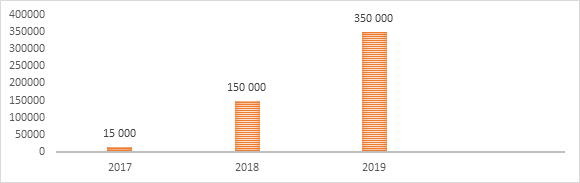 Как показывает Рисунок 1, в период с 2017 по 2018 год число арендателей возросло в 10 раз, а в период с 2018 по 2019 год их число еще выросло в 2,3 раза.
