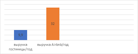 Рис. 2- Анализ средней выручки от аренды номера в обычной гостинице и через Airbnb.