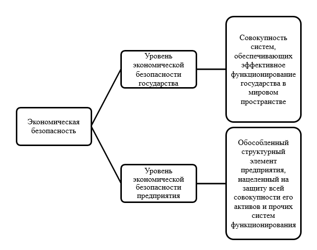 Экономическую безопасность рассматривают на двух уровнях: микроуровень – в качестве экономической безопасности предприятий и макроуровень – государственная безопасность.