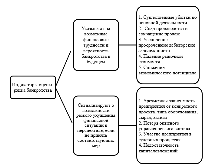 Определение и оценка риска банкротства предприятия проводится по критическим индикаторам, позволяющим успешно осуществлять регулирование экономической безопасности (рисунок 7).