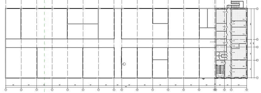Производственный цех запроектирован одноэтажным, без подвала, коридорного типа, прямоугольной конфигурации в плане с размерами в осях 27,0х81,0м. К производственному цеху примыкает здание АБК. Здание АБК двухэтажное, без подвала, коридорного типа, прямоугольной конфигурации в плане с размерами в осях 12,0х27,0м.