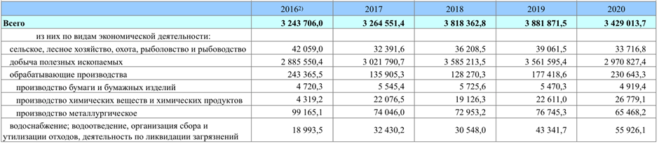 Таблица 1. Образование отходов производства и потребления по видам экономической деятельности по Российской Федерации