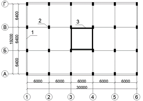Рис 1. Расположение несущих конструкций типового этажа рассматриваемых вариантов.
