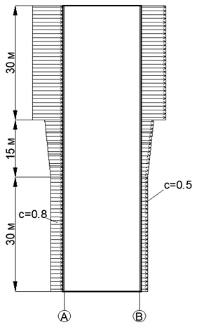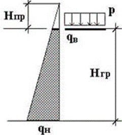 Рис 3. К определению бокового давления грунта на стены подземной части здания Объемный вес насыпного грунта составляет gгр=18 kN/м3, угол внутреннего трения j=300.