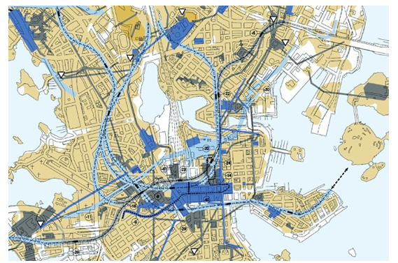 Рис. 1. Подземная застройка Хельсинки. Фрагмент генплана