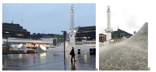 Рис. 3.а. Рекреационное пространство площади, б. сложная поверхность куполов